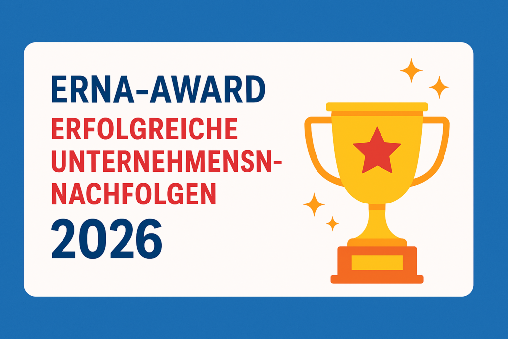 Der ERNA‑Award 2026 rückt erfolgreiche Unternehmensnachfolgen in Niedersachsen ins Rampenlicht. KMU, die zwischen 2023 und 2025 eine Nachfolge umgesetzt haben, können sich bis zum 15. März 2026 bewerben. Jetzt informieren, am Erfahrungsaustausch teilnehmen – und auf Wunsch Unterstützung bei der Bewerbung erhalten!